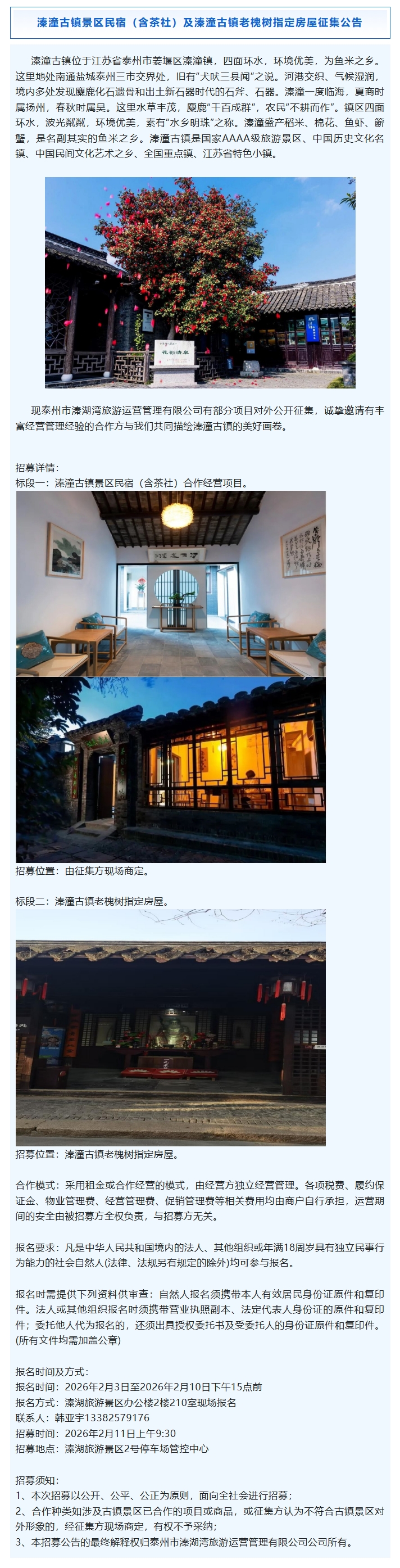 溱潼古镇景区民宿(含茶社)及溱潼古镇老槐树指定房屋征集公告
